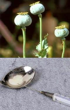 A Heroina é injetavel e vicia facilmente é quase imposivel sair dessa droga, extraida do Opio (Papola) causa overdose e diversas doenças e problemas fisicos e mentais, o efeito dura entre 5 a 10 minutos.