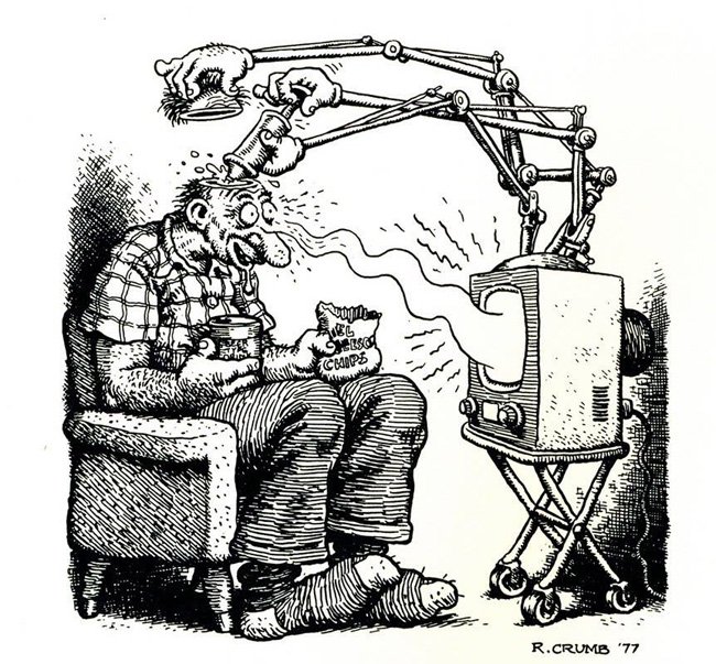 Um exemplo simples é o YouTube. Ele quer aumentar ao máximo o tempo que passamos nele. O que fazem então? Exibem o próximo vídeo automaticamente. Digamos que funciona muito bem. Estão conseguindo um pouco mais do tempo das pessoas. A Netflix observa isso e diz: “Isso reduz minha participação no mercado. Irei exibir automaticamente o próximo episódio”. O Facebook diz então: “Isso reduz toda a minha participação no mercado, então tenho que exibir todos os vídeos antes mesmo que você clique pra assistir”. Portanto, a internet não está evoluindo ao acaso. A razão pela qual ela parece estar nos envolvendo dessa maneira é a disputa pela atenção. Sabemos aonde isso vai chegar. A tecnologia não é neutra, e leva-se esta disputa ao nível mais baixo do cérebro de quem pode ir mais baixo para ganhá-la.