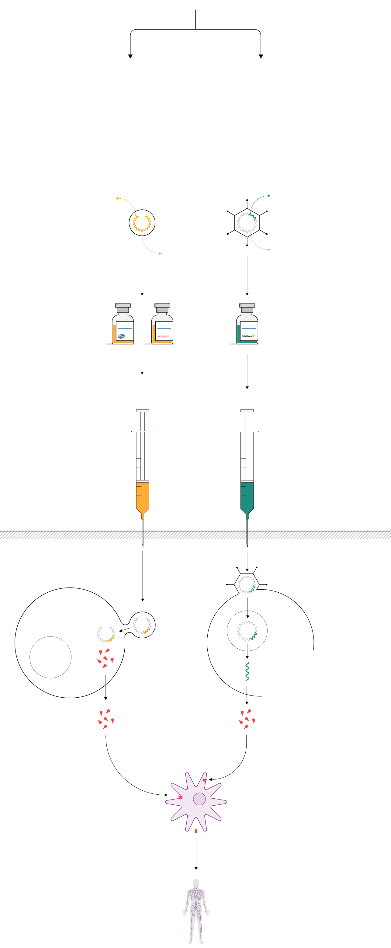 A mensagem é codificada em uma molécula de RNA que é encapsulada em uma membrana lipídica para que possa entrar nas células