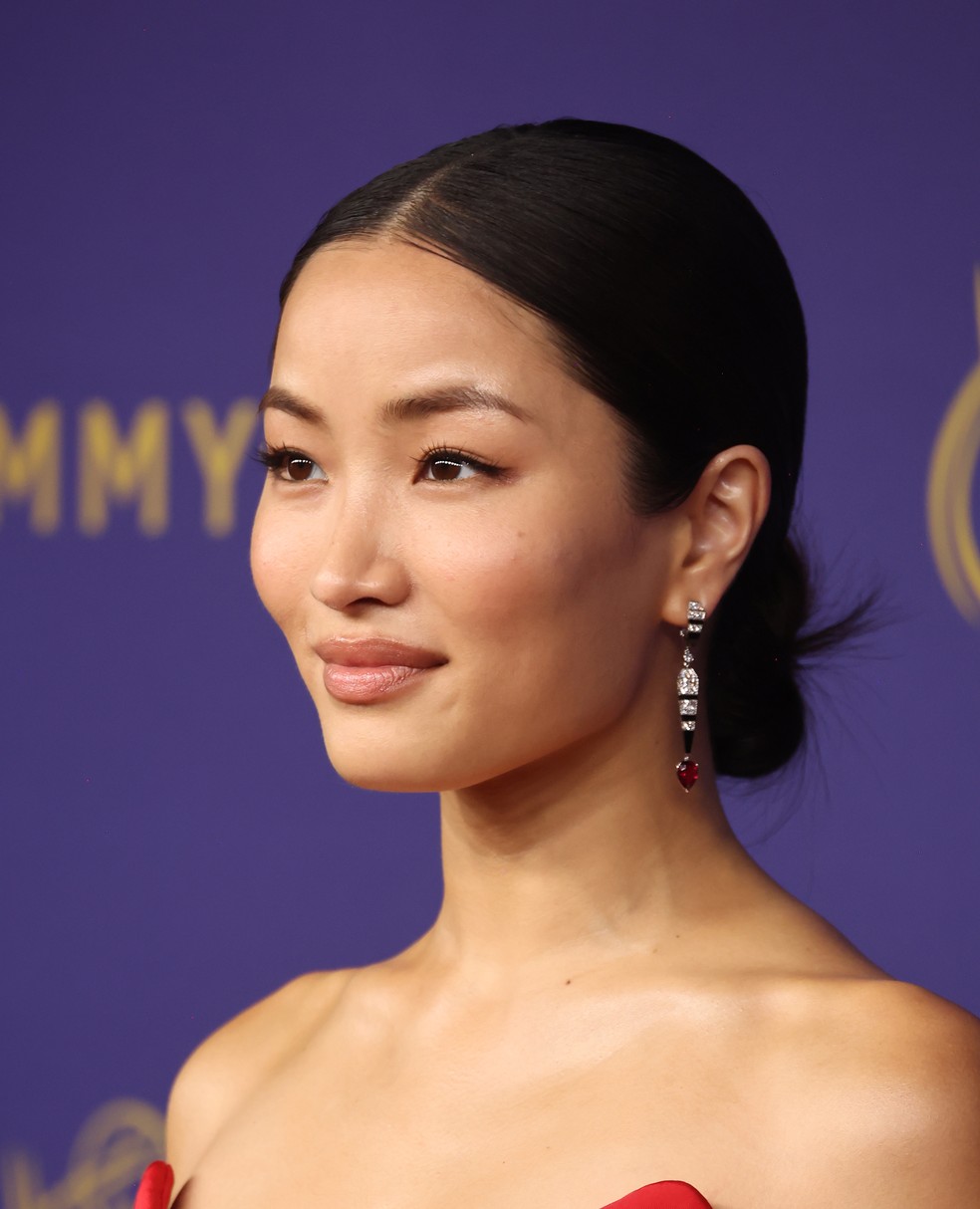 A atriz e cantora japonesa é a favorita da noite para ganhar o Emmy com sua atuação na série Xogum, na categoria de Melhor Atriz em Série de Drama. Caso leve a estatueta para casa, os registros que vão ficar em imagens é de uma beleza etérea, linda e formal, à altura da premiação. Afinal, o coque baixo alinhado passa um ar de sofisticação extrema, junto com a maquiagem neutra.